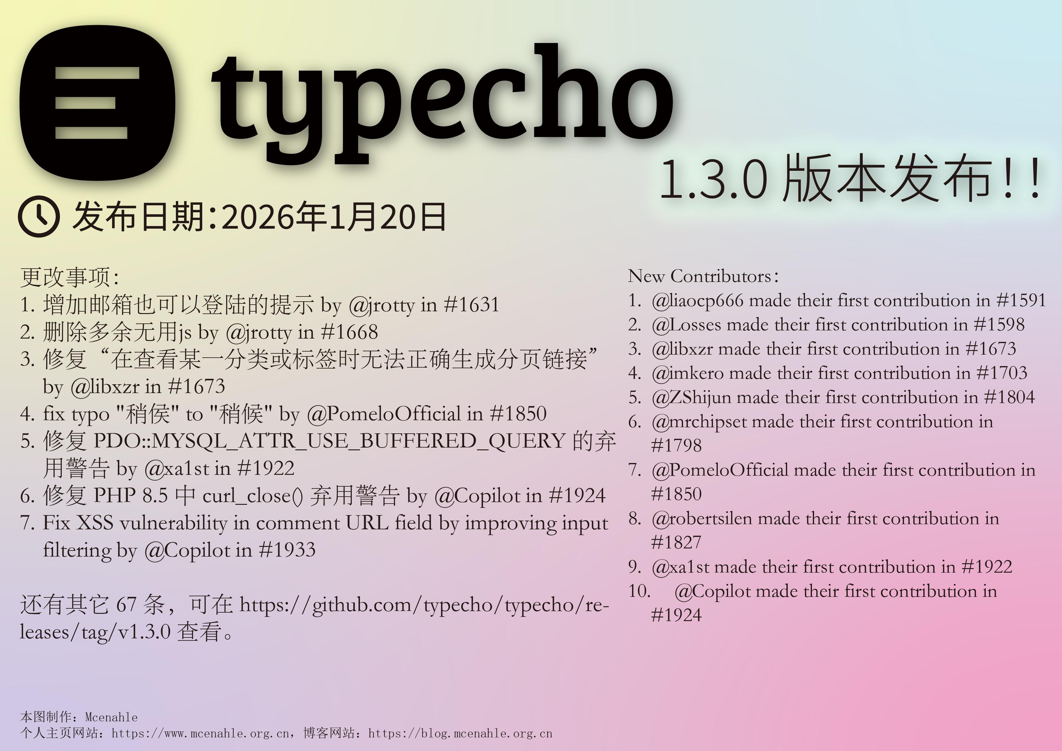 Typecho 1.3 版本发布了!以下是我用 Illustrator 做的简报: